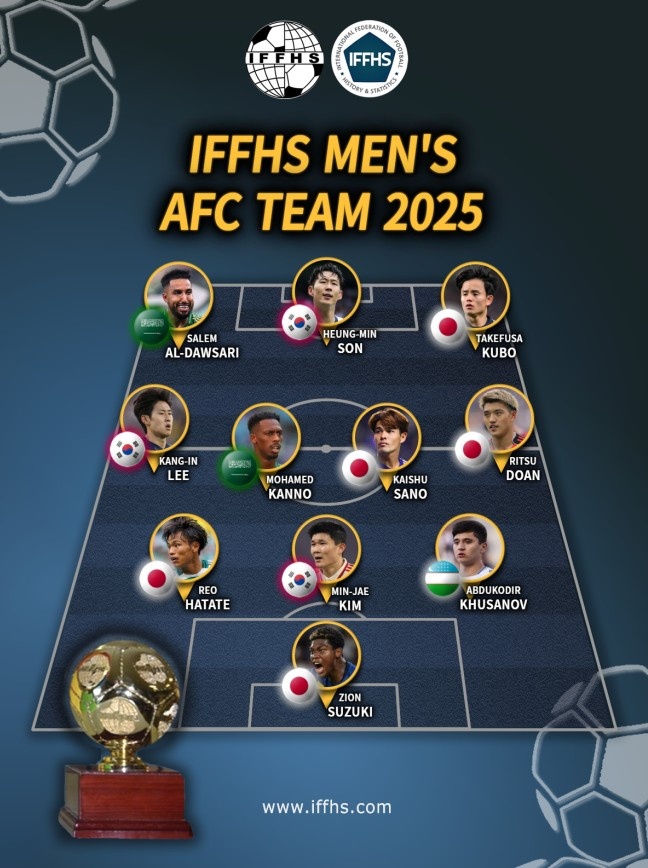 开云集团-IFFHS亚足联年度最佳阵:日本5人韩国3人,孙兴慜、胡桑诺夫在列